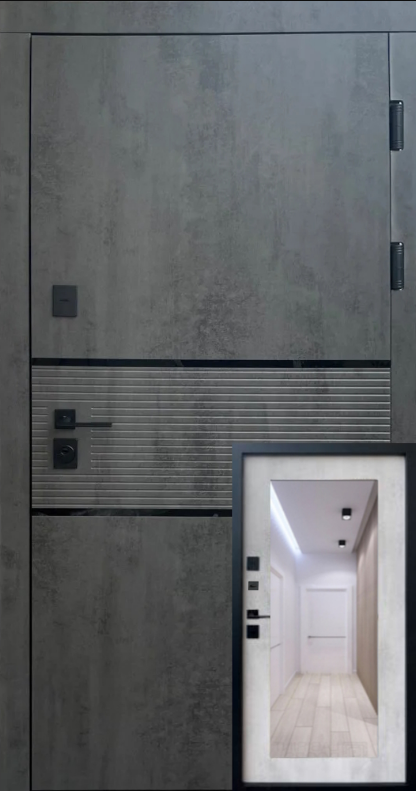 Венеція + дзеркало квартира, Бетон темний / бетон сніжний, 860x2040